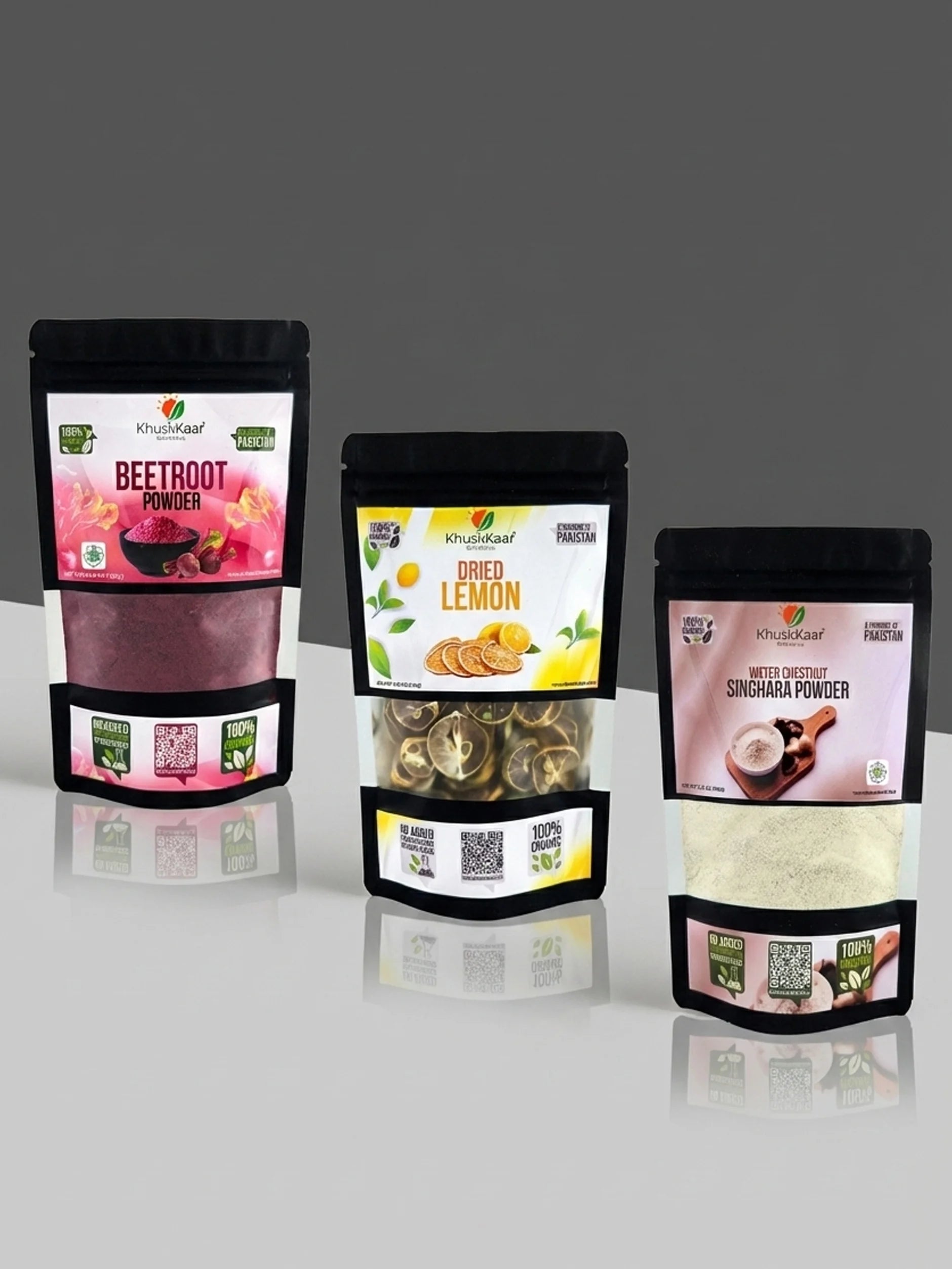 This bundle includes beetroot powder, water chestnut (singhara) powder, and dried lemon — gently dehydrated to retain natural color, taste, and nutritional value.